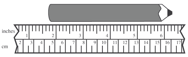 The length of a pencil is 9pu p2pzc e7:/q5))gbzhohe((zhhp b me u .z 4qfw8v0piasured using part of a measuring tape as shown below p wq.z0iv4f 8u.  What is the length of the pencil?
