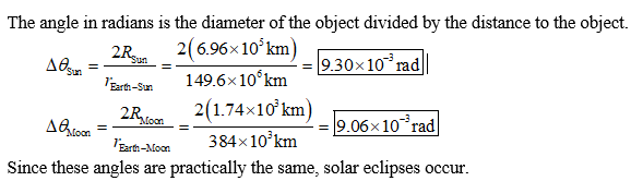 Eclipses happen on Earth because of an amazing coix5lbom b(m jcnj 2txmz7-9,0tncidence. Calculate, usxm+ 9jen8pn( ping the information inside the Front Cover, the angular diamx8p+ 9npn j(emeters (in radians) of the Sun and the Moon, as seen on Earth. Sun = $rad$ Moon = $rad$