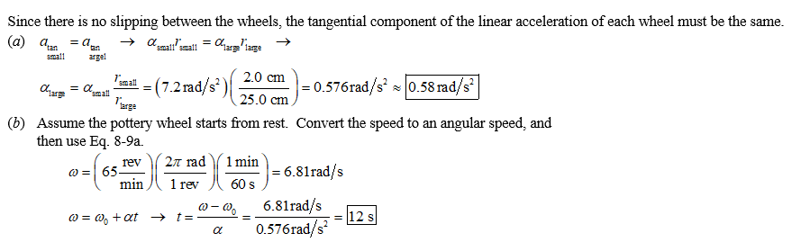 The tires of a car make 65 revolutions as the(z9oi9xg( dregr *ov, car reduces i;yqex 1kn9/fm ts speed uniformly from 95km/h to 45km/h The tires have a diameter of 0.80;q/ 9kxnmfe1y m. (a) What was the angular acceleration of the tires? $\approx$ $rad/s^2$ (b) If the car continues to decelerate at this rate, how much more time is required for it to stop? s